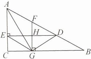 如图,$ \triangle ABC $中,D是AB上一点,$ DE \perp AC $于点E,F是AD的中点,$ FG \perp BC $于点G,与DE交于点H,若$ FG = AF $,AG平分$ \angle CAB $,连接GE,GD.
