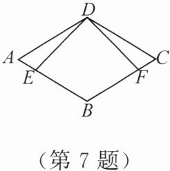 7. 如图,已知□ABCD中,点E,F分别是AB,BC上的点,$ AE = CF $,且$ \angle AED = \angle CFD $.求证:四边形ABCD是菱形.