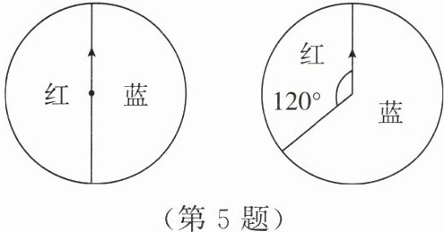 5. 用图中两个可自由转动的转盘做“配紫色”游戏:分别旋转两个转盘,若其中一个转出红色,另一个转出蓝色即可配成紫色。那么可配成紫色的概率是( )。