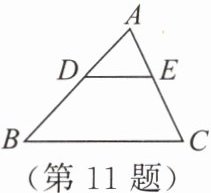 11. 如图,已知$AB:DB = AC:EC$,$AD = 15 cm$,$AB = 40 cm$,$AC = 28 cm$,则$AE= $______。