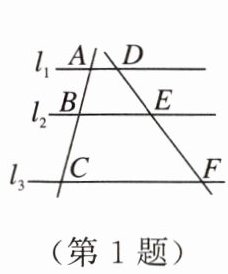 1. 如图,已知直线$l_{1}// l_{2}// l_{3}$,$AB = 3$,$BC = 4.5$,$DE = 4$,则$EF$等于( )。