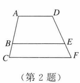 2. 如图,已知$AD// BE// CF$,且$AB:BC = 2:1$,则$DF:EF$等于( )。