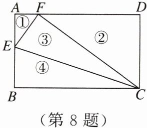 8. 如图,点 $E$ 是矩形 $ABCD$ 的边 $AB$ 上任意一点,点 $F$ 是边 $AD$ 上一点,$\angle EFC = 90°$,图中一定相似的三角形是( ).