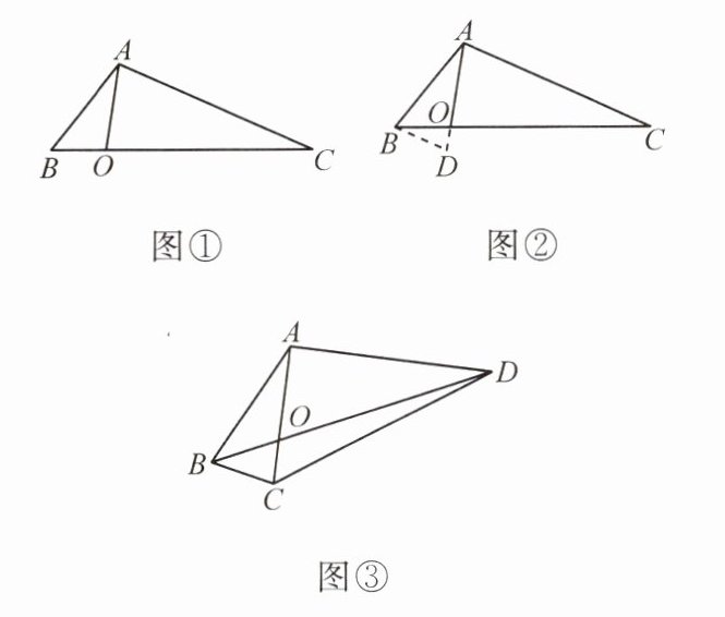经过社团成员讨论发现,过点 $B$ 作 $BD // AC$,交 $AO$ 的延长线于点 $D$,通过构造 $\triangle ABD$ 就可以解决问题(如图②).