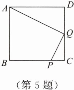 5. 如图,$P是正方形ABCD边BC$上一点,且$BP = 3PC$,$Q是DC$的中点,则$AQ:QP$等于( )。