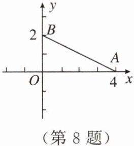 8. 如图,在平面直角坐标系中,有两个点$A(4,0)$,$B(0,2)$。如果点$C在x$轴上(点$C与点A$不重合),当点$C$坐标为____时,使得由$B$,$O$,$C三点组成的三角形和\triangle AOB$相似。