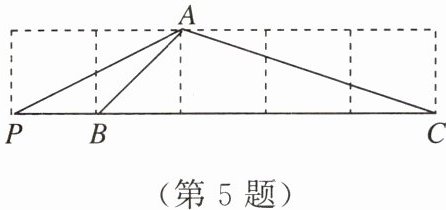 5. 如图,在边长为 1 的正方形网格中有点$P$,$A$,$B$,$C$,则在图中所形成的三角形中,相似的三角形是____.