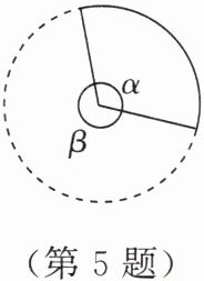 5. 如图,为了使扇子的外形美观,通常情况下 $ \alpha $ 与 $ \beta $ 的比按黄金分割设计. 若取黄金比为 $ 0.6 $,则 $ \alpha = $ ______.