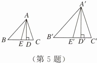 5. 如图,在 $\triangle ABC$ 和 $\triangle A'B'C'$ 中,$AB = 5$,$BC = 4$,$\angle B = 50^{\circ}$,$A'B' = 6$,$B'C' = 4.8$,$\angle B' = 50^{\circ}$。$AD$,$A'D'$ 分别是它们的高,$AE$,$A'E'$ 分别是 $\angle BAC$,$\angle B'A'C'$ 的平分线.