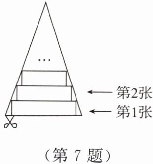 7. 一张等腰三角形纸片,底边长 $15\mathrm{cm}$,底边上的高长 $22.5\mathrm{cm}$,现沿底边依次从下往上裁剪宽度均为 $3\mathrm{cm}$ 的矩形纸条,如图。已知剪得的纸条中有一张是正方形,则这张正方形纸条是( ).