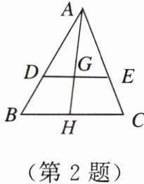 2. 如图,在 $\triangle ABC$ 中,$DE// BC$,$AH$ 是 $\triangle ABC$ 的角平分线,交 $DE$ 于点 $G$,$DE:BC = 2:3$,那么 $AG:GH$ 等于( ).