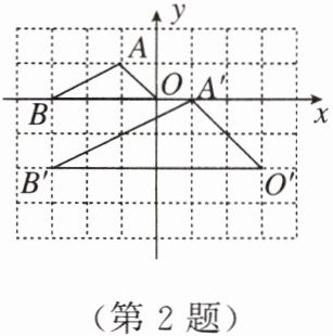 2. 如图,在边长为 $ 1 $ 的小正方形组成的网格中,建立平面直角坐标系,$ \triangle ABO $ 与 $ \triangle A'B'O' $ 是以点 $ P $ 为位似中心的位似图形,它们的顶点均在格点(网格线的交点)上,则点 $ P $ 的坐标为( )。