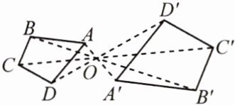 如图,四边形 $ ABCD $ 和四边形 $ A'B'C'D' $ 是以点 $ O $ 为位似中心的位似图形,若 $ OA:OA' = 2:3 $,则四边形 $ ABCD $ 与四边形 $ A'B'C'D' $ 的面积比为( )。