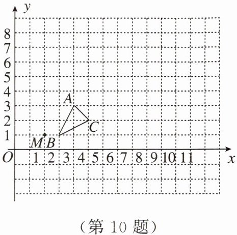 10. 如图,在平面直角坐标系中,$ \triangle ABC $ 的三个顶点 $ A(4,3) $,$ B(3,1) $,$ C(5,2) $,点 $ M(2,1) $。