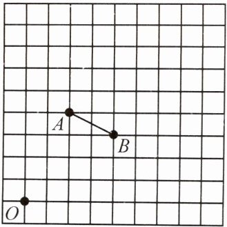 如图,在由边长为 $ 1 $ 个单位长度的小正方形组成的 $ 10 × 10 $ 网格中,已知点 $ O $,$ A $,$ B $ 均为网格线的交点。