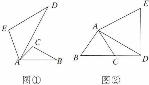 (2)如图②,$ \triangle ABC $ 的边长 $ AB $ 为 $ 3\ cm $,将它做旋转相似变换 $ A\left( \dfrac{4}{3},90^{\circ} \right) $,得到 $ \triangle ADE $,求线段 $ BD $ 的长。