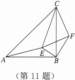 11. 如图,$\triangle ABC和\triangle CEF$均为等腰直角三角形,点$E在\triangle ABC$内,$\angle CAE+\angle CBE = 90^{\circ}$,连接$BF$。