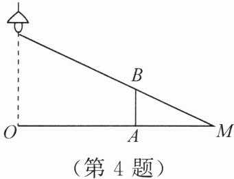 4. 如图,路灯垂直照射在地面的位置为点$O$,小华(用线段$AB$表示)站在离路灯不远的$A$处,在路灯的照射(中心投影)下,可形成小华的影子. 小华的影子是线段______.