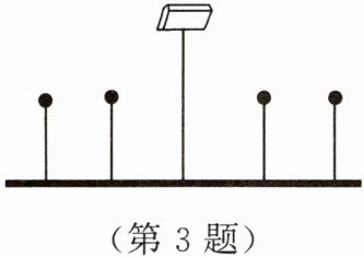 3. 如图,夜晚路灯下有一排同样高的旗杆,离路灯越近,旗杆的影子( ).