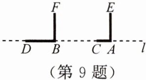 9. 高高的路灯挂在路边的上方,高傲而明亮,小明拿着一根$2\ m$长的竹竿,想量一量路灯的高度,直接量是不可能的. 于是,他走到路灯旁的一个地方,竖起竹竿(即$AE$),这时,他量了一下竹竿的影长(即$AC$)正好是$1\ m$,他沿着影子的方向走,向远处走出两根竹竿的长度(即$AB = 4\ m$),他又竖起竹竿,这时竹竿的影长正好是一根竹竿的长度(即$BD = 2\ m$). 此时,小明抬头瞧瞧路灯,若有所思地说:“噢,我知道路灯有多高了!”同学们,请你和小明一起解答这个问题: