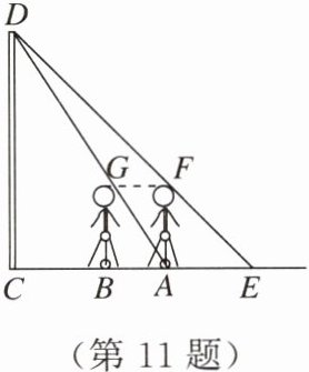 11. 如图,墙壁$D$处有一盏灯,小明站在$A处测得他的影长与身长都为1.6\ m$,小明向墙壁走$1\ m到B处发现影子刚好落在A$点,求灯泡与地面的距离$CD$.(结果精确到$0.01\ m$)