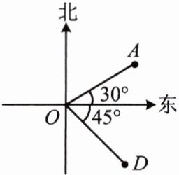 D.点D在点O的南偏东$45^{\circ}$方向上