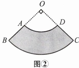 4. 马面裙又名马面褶裙,是我国古代女子穿着的主要裙式之一,将图①所示的马面裙抽象成数学图形,如图②中的阴影部分所示,$ \overgroup{AD} $ 和 $ \overgroup{BC} $ 所在圆的圆心均为点 $ O $,且点 $ A $ 在 $ OB $ 上,点 $ D $ 在 $ OC $ 上.若 $ OA = AB = 6 dm $,$ OA \perp OD $,则该马面裙裙面(图②中阴影部分)的面积为(