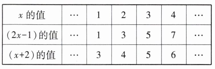 5. 由表可知方程 $ 2x - 1 = x + 2 $ 的解是