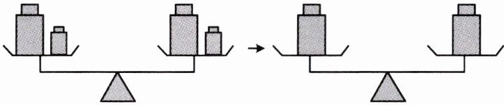 2. 如图,从一个平衡的天平两边分别拿走一个砝码,天平仍平衡. 下列选项与这一事实相符的是(