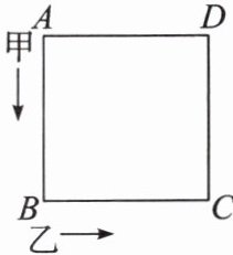 4. 如图,甲、乙两人沿着边长为8 m的正方形的边按逆时针方向行走.甲从点A出发以1 m/s的速度行走,同时乙从点B出发以1.4 m/s的速度行走.当乙第1次追上甲时,是在正方形的(