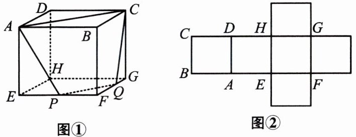 8. 图①中四边形 APQC 是正方体的截面,请在图②所示正方体表面展开图中画出四边形 APQC 的 4 条边.