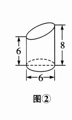 解:$\pi\left(\frac{6}{2}\right)^2×(8+6)×\frac{1}{2}=9\pi×14×\frac{1}{2}=63\pi$. 答:图②所示几何体的体积为$63\pi$.