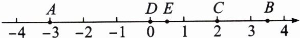 解:由数轴上各点的位置可知点A,B,C,D分别表示的有理数为−3,3.5,2,0,0.5. 故−3<0<0.5<2<3.5.