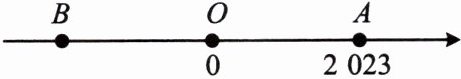 3. 如图,数轴上点A表示的数是2023,OA=OB,则点B表示的数是(