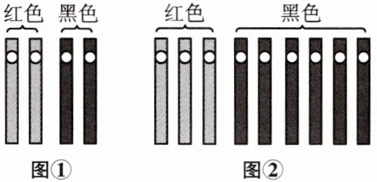 1. 中国人最先使用负数,魏晋时期的数学家刘徽在他的著作《九章算术注》中用不同颜色的算筹(小棍形状的记数工具)分别表示正数和负数(红色为正,黑色为负).图①表示的是$(+2)+(-2)$,根据这种表示法可推算出图②表示的算式是(