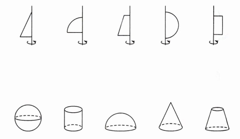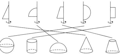 6. 如图,上面的平面图形绕轴旋转一周,可以得出下面的立体图形.请你把有对应关系的平面图形与立体图形连接起来.