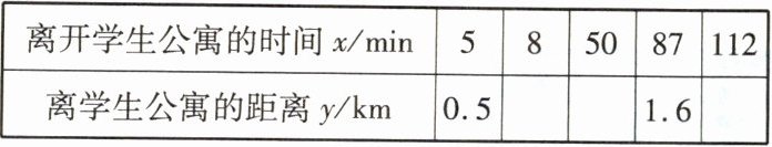 当小琪从超市出发,离学生公寓的距离为1 km时,他离开学生公寓的时间为$112+\frac{2-1}{2÷8}=116(min)$.