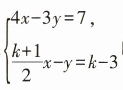 2. 然后将$y = -x$代入方程组$\begin{cases}4x-3y = 7\\frac{k + 1}{2}x-y=k - 3\end{cases}$:
