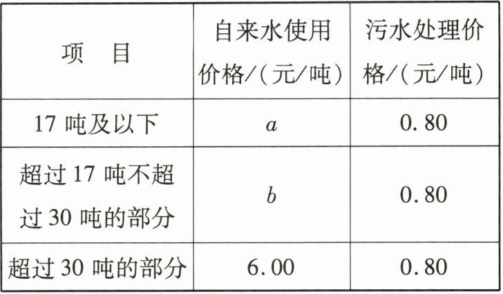 (3)设小王家6月份用水x吨.若用水30吨,则水费为17×2.2+13×4.2+30×0.8=116(元).因为184>116,所以小王家6月份用水超过了30吨.116+6(x-30)+0.8(x-30)=184,解得x=40.答:6月份用水40吨.