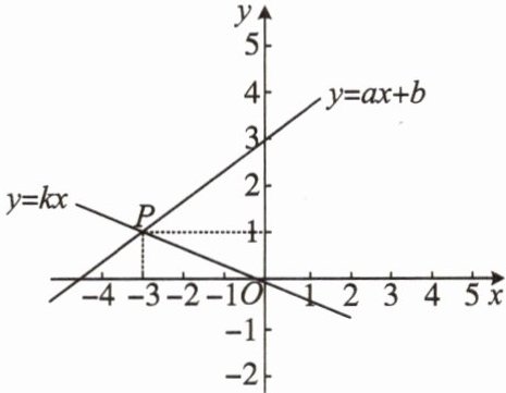 2. 如图,函数$y= ax+b和y= kx的图象交于点P$,则关于$x,y$的二元一次方程组 $\begin{cases} ax - y + b = 0, \\ kx - y = 0 \\ \end{cases}\\ $ 的解是(