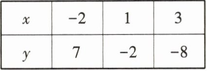 1. 已知$y是x$的一次函数,下表列出了部分对应值: