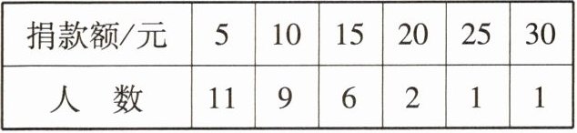 3. 在心系灾区自愿捐款活动中,某班30名同学的捐款情况如下表: