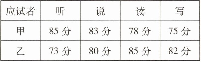 3. 一家公司打算招聘一名英文翻译,对甲、乙两名应试者进行了听、说、读、写的英语水平测试。他们各项的成绩(百分制)如表所示: