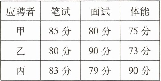 7. 某公司需招聘一名员工,对应聘者甲、乙、丙从笔试、面试、体能3个方面进行量化考核。甲、乙、丙的各项得分如下表:
