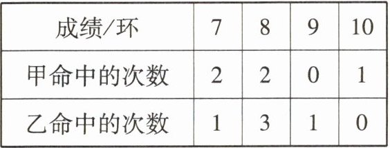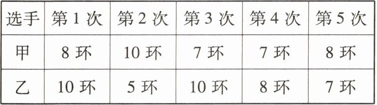 7. 甲、乙两人进行射击训练,在相同条件下各射击5次.成绩统计如下:
