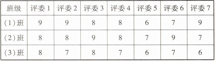 8. 某中学开展主题为“AI赋能成长,智慧点亮学途”的黑板报评比活动,学校请7位评委给各班的主题黑板报进行评分(10分制),现截取七年级部分班级的得分(单位:分),如下表: