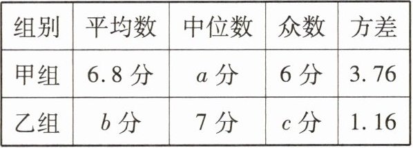 6. 某校举办了国学知识竞赛,满分10分,学生得分均为整数。在初赛中,甲、乙两组(每组10人)学生的成绩(单位:分)如下: