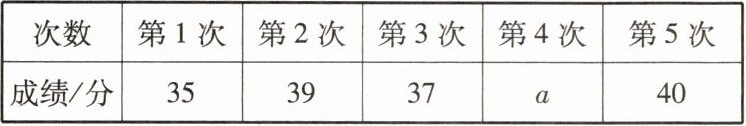 5. 某中学九年级学生共进行了5次体育模拟测试,已知甲、乙两位同学5次模拟测试成绩的总分相同,小明根据甲同学的5次测试成绩绘制了尚不完整的统计表,并给出了乙同学5次测试成绩的方差的计算过程。