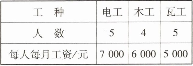 7. 某工程队有14名员工,他们的工种及每人每月的工资如下表所示: