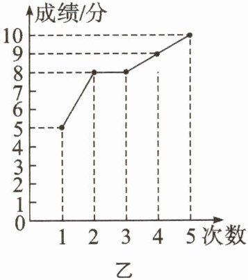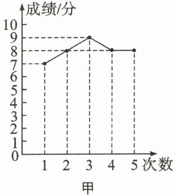 8. 甲、乙两人参加学校组织的理化实验操作测试,近5次的测试成绩如图所示: